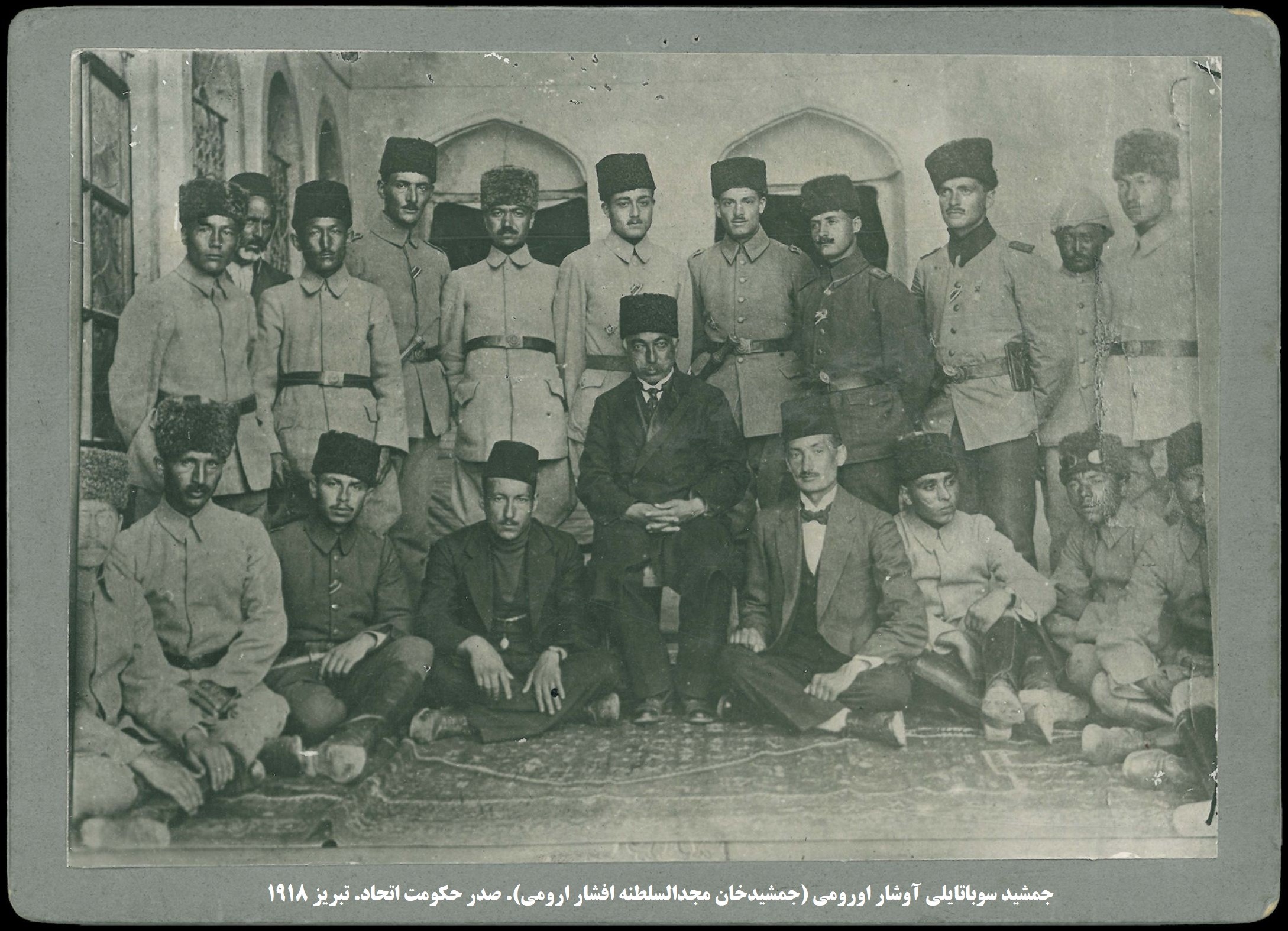 ردیف جلو از چپ به راست: ١-اسماعیل نعلبند، مامور حمل اسلحهی ارسالی عوثمانلیها از بیجار تورکایلی و در بومباران رشت توسط انگلیسیها به شهادت رسید، ٢-جواد خان نزاکتی (مترجم سولطان)، ٣-سولطان علی اکبر سیاهپوش، ٤-مینباشی یوسف ضیاء طالبزاده بیگ، قهرمان ملی تورک، رئیس «هئیت مخصوصهی اوردوی ششم» عوثمانلی به هنگام آزادسازی تبریز و تورکایلی و رئیس «جمعیت اتحاد اسلام» تاسیس شده در تبریز ١٩١٨، ٥-یوزباشی یعقوب بیگ، ٦-گروهبان عمر افندی، ٧-نایب مصطفی قزوینی
