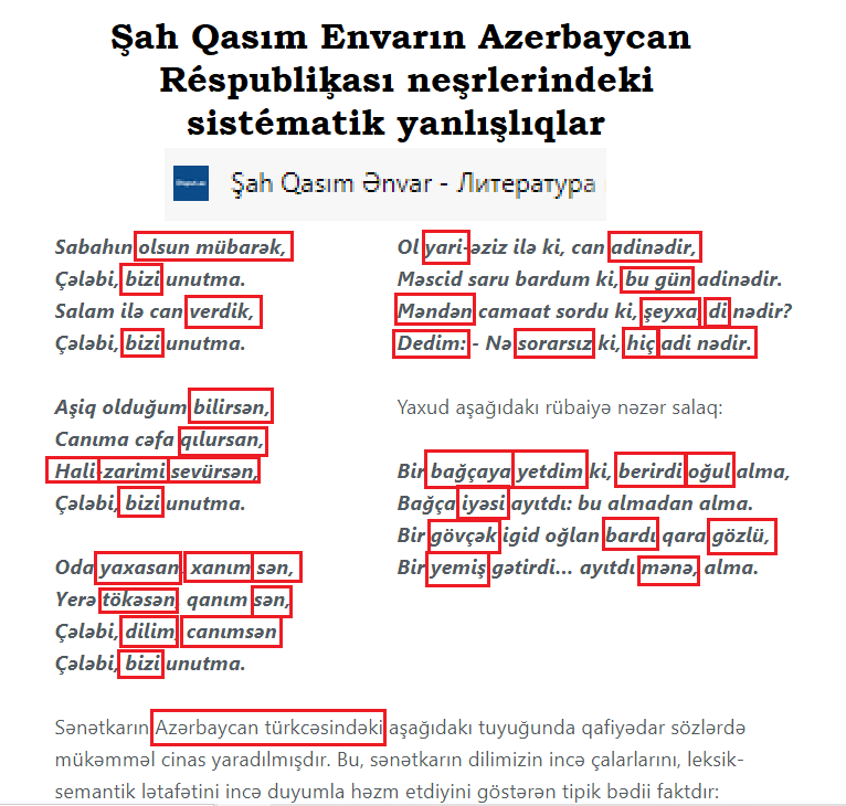 کامل اشعار تورکی قاسم انوار نشر نهشده است. در این کتاب، برای